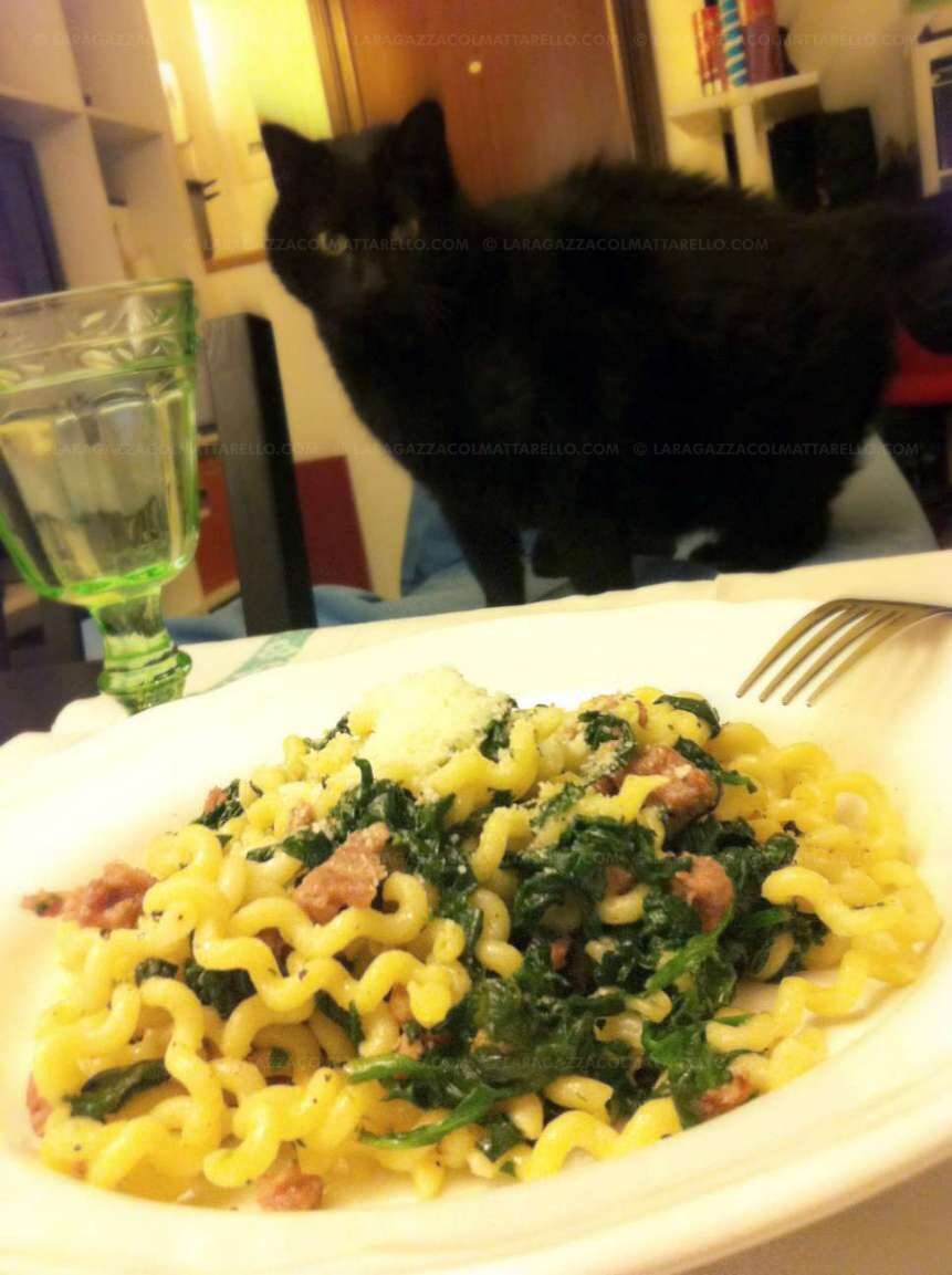 Fusilli lunghi amb botifarra i espinacs ~ Primers Receptes  ~ La ragazza col mattarello